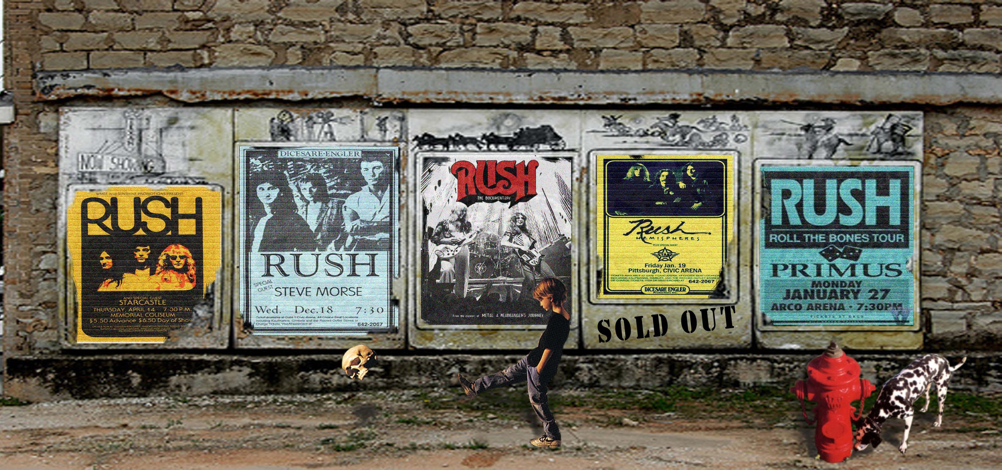 Then a few Google searches for images of people at concerts; waiting in line, cheering, sitting in their seats, etc. I added a few Rush logos here and there, and printed the images out. (click the images for larger versions)